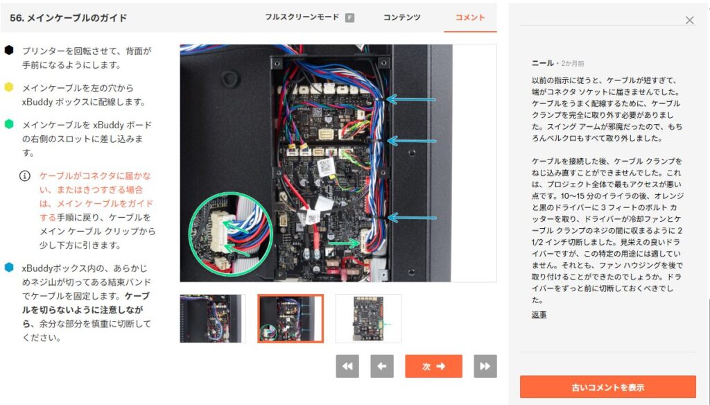 最初は「は?」と思ったのですが、2回説明を読んで納得。何気ない工程かもしれませんが、こうした細やかな配慮が随所にあるのがPrusaマニュアルの良いところ。安心して作業を進められます。