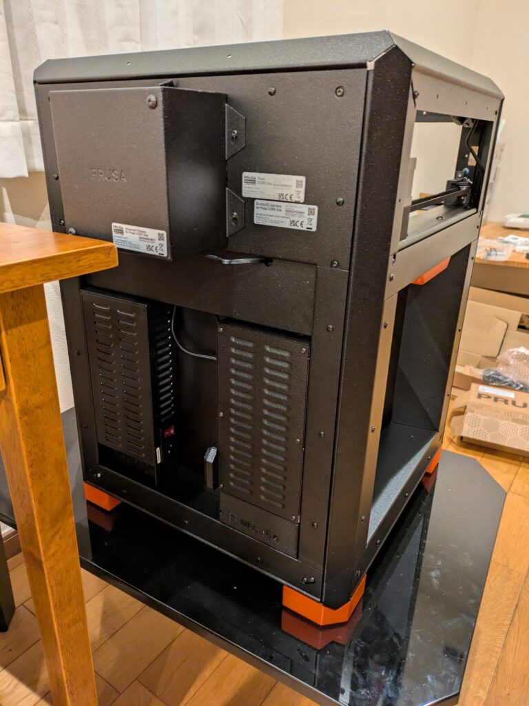 オプションで購入したアドバンスドフィルターシステムも取り付けました。ABSやASAを造形するときの健康被害を防いでくれる頼もしいアイテムです。高いオプションではありますが、健康に不安を抱えながら造形するのは嫌だったので、投資する価値はあると判断しました。これも背面パネルを取り付ける前にやっておきました。